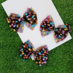 Turn heads with our Fancy Multi Dots Hairbow – a bold statement piece full of fun and flair!
